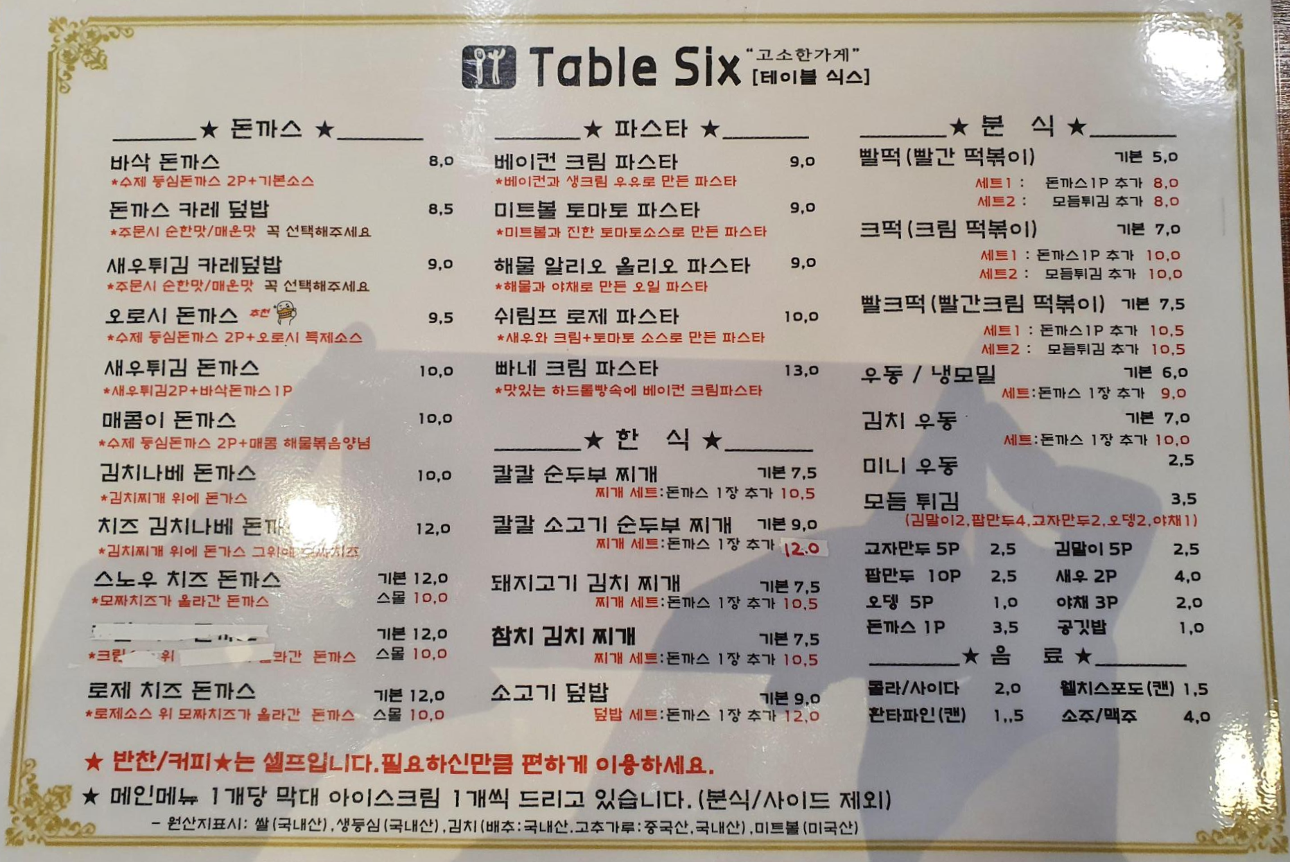 메뉴는 수제돈가스 맛집답게 돈까스 메뉴가 많은데요. 그 외에도 파스타, 한식, 분식 메뉴도 제공하고 있습니다. 테이블 식스의 메인 메뉴는 추천 메뉴인 오로시 돈까스 인데요. 와사비와 청양고추를 곁들여 먹을 수 있는 마곡 맛집 테이블식스만의 시그니처 메뉴입니다. 가격대는 8천 원에서부터 1만 2천 원까지 구성되어 있습니다.