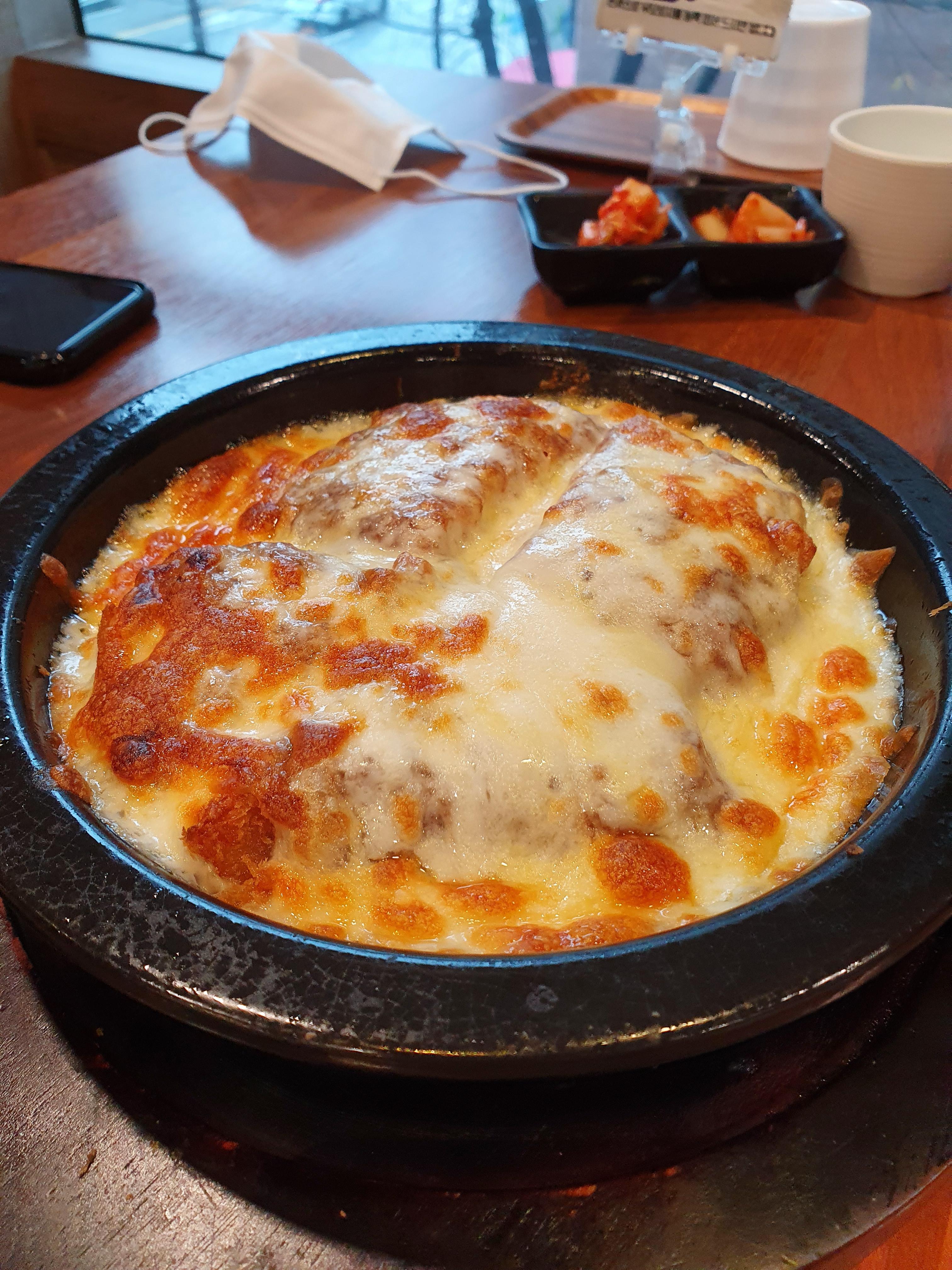 스노우 치즈 돈까스는 치즈가 충분하게 들어 있어 치즈 부족함 없이 먹을 수 있어서 좋았습니다. 추가 사이드가 없는 건 아쉬웠습니다.