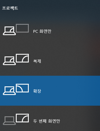 듀얼 모니터나 프로젝터를 쓰시는 분들은 프로젝트 설정을 많이 사용하시는데요.