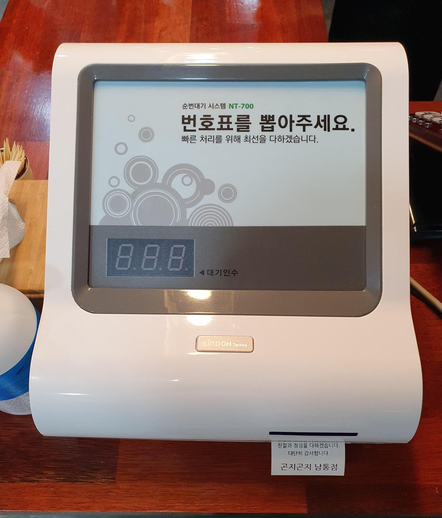 가게에 들어가면 카운터가 보이는데요. 이 카운터에 번호표 기기가 설치되어 있습니다. 주말 점심, 저녁시간에는 손님이 많아 번호표 기기를 사용하는 것 같더라고요. 제가 갔을 때는 손님이 많지 않아 기다리지 않고 바로 안내받았습니다.