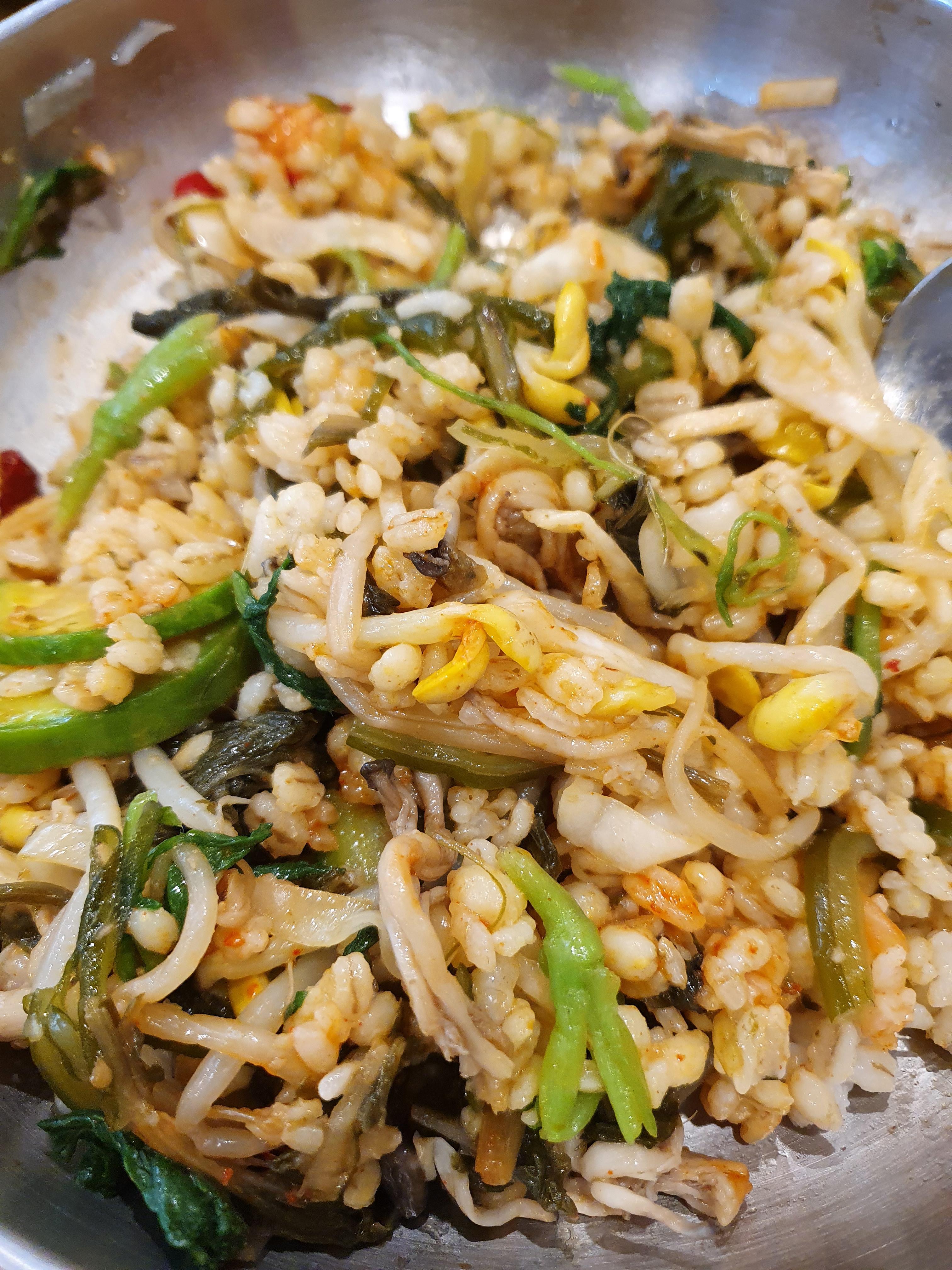 보리밥이 나오면 밑반찬으로 제공해주는 각종 야채를 넣어서 비벼서 비빔밥처럼 먹으면 되는데요. 다양한 밑반찬이 제공돼서 입맛에 맞게 다양한 야채를 넣을 수 있어 좋았습니다.