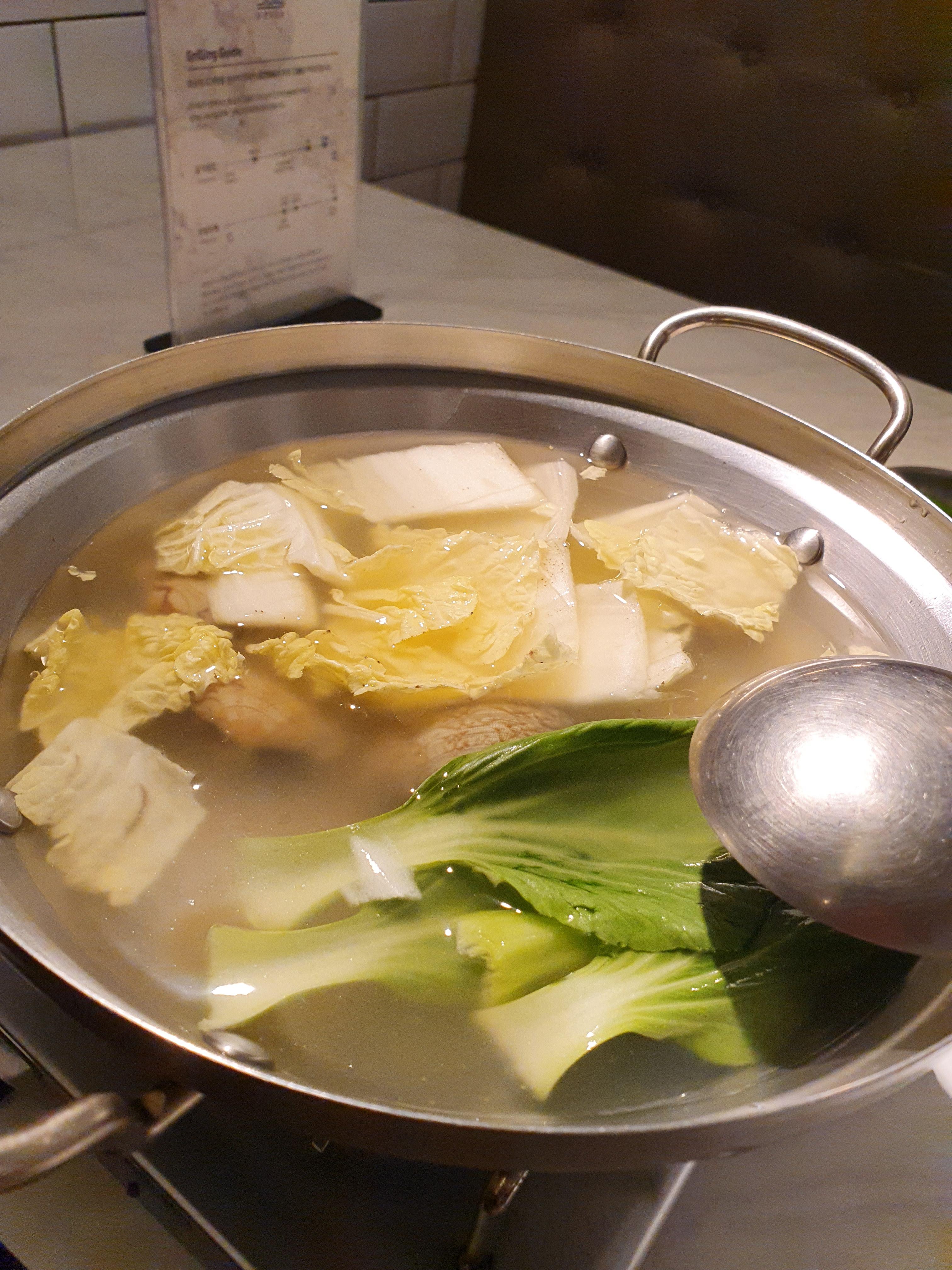 곳간504는 주문을 하면 기본으로 소스, 명이나물, 겉절이, 쌈을 제공해줍니다. 소스 류는 카레, 쌈장, 히말라야 핑크 솔트를 제공해줍니다. 그리고 추가로 조개탕도 무료로 제공해주는데요. 따로 사이드를 주문하지 않아도 이 조개탕 때문에 정말 배부르게 먹을 수 있었습니다. 추가로 면사리를 추가할 수 있기 때문에 조개탕에 면을 추가해서 먹어도 좋을 것 같았습니다.